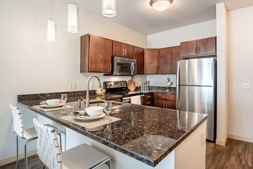 Elan is a beautiful apartment community located in Fitchburg, Wisconsin. The building is close to many amenities, including shopping, restaurants, and schools. The apartments are spacious with features like hardwood floors, granite countertops, and stainless steel appliances. Take in the beautiful view of Fitchburg from our balconies or patios or simply spend time in your brand new home. Come home to Elan where you can start living the lifestyle you desire.
