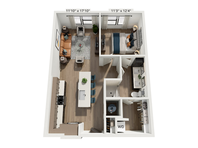 Apartment Model: A1.1From $1,7201 Bedroom, 1 Bath, 763 sq ftAvailable November 8, 2025Floor plans are artist's rendering. All dimensions are approximate. Actual product and specifications may vary in dimension or detail. Not all features are available in every rental home. Prices and availability are subject to change. Base rent is based on monthly frequency. Additional fees may apply, such as but not limited to package delivery, trash, water, amenities, etc. Deposits vary. Please see a representative for details.