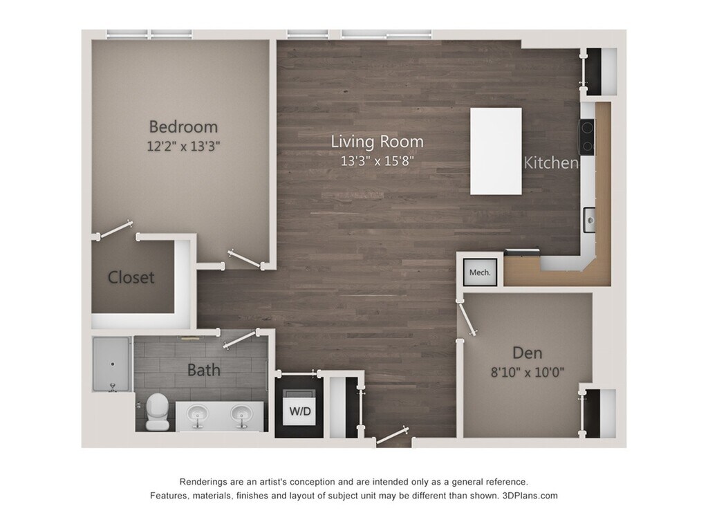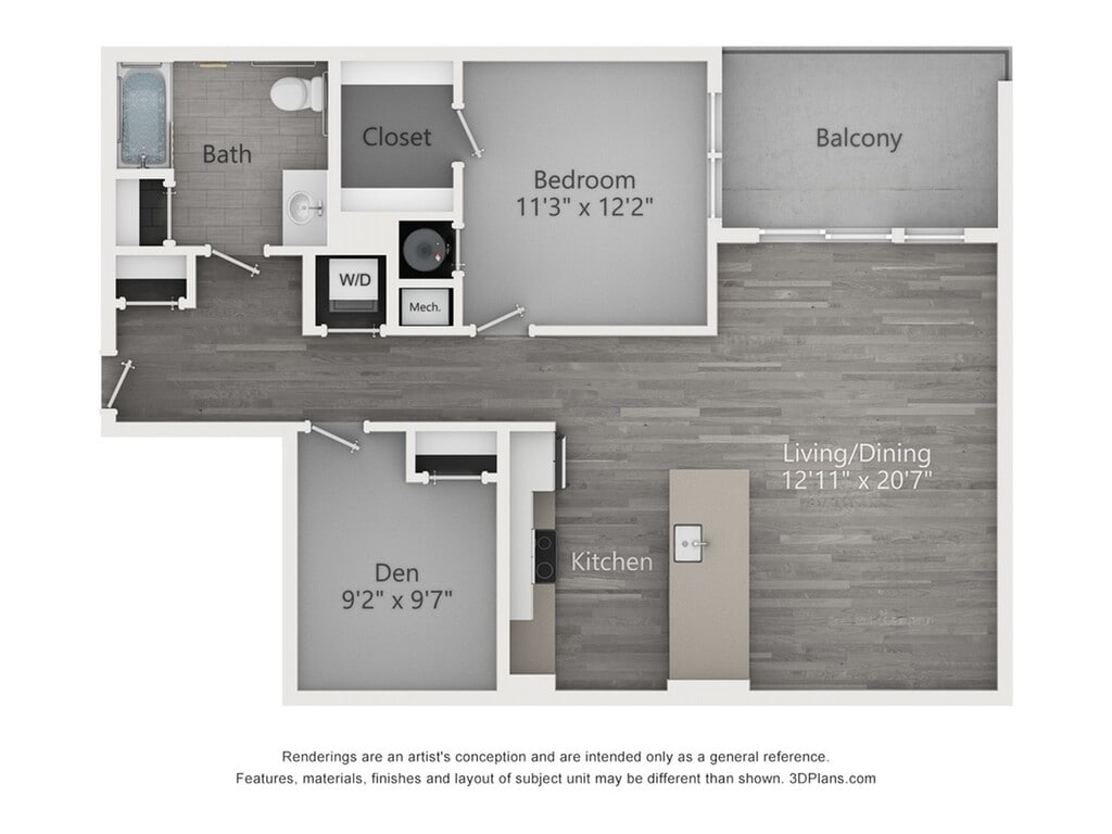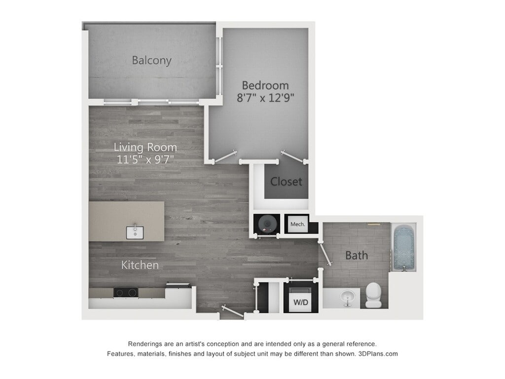 Apartment Model: Studio (621 SF)From $2,880Studio, 1 Bath, 621 sq ftAvailable May 27, 2026Floor plans are artist's rendering. All dimensions are approximate. Actual product and specifications may vary in dimension or detail. Not all features are available in every rental home. Please see a representative for details.