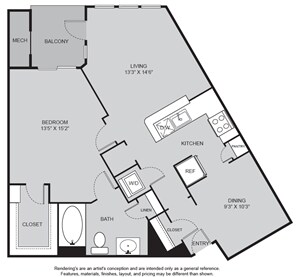Apartment Model: A3From $1,6391 Bedroom, 1 Bath, 989 sq ftAvailable NowFloor plans are artist's rendering. All dimensions are approximate. Actual product and specifications may vary in dimension or detail. Not all features are available in every rental home. Please see a representative for details.