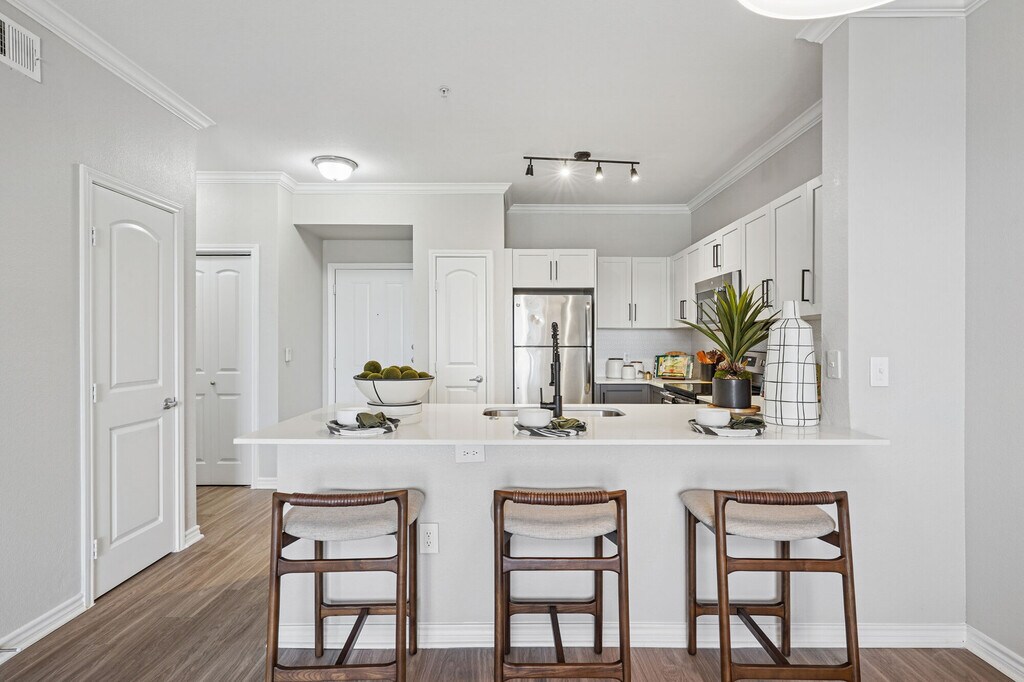 Elan at Bluffview offers one, two, three and four-bedroom apartments in Northwest Dallas. Our spacious floorplans are designed for your comfort and convenience. Select homes feature stainless-steel appliances, granite and quartz countertops, and are completed with custom cabinetry and crown moldings. Walk-in closets, private balconies, and in-unit washer and dryer create a well-rounded living environment. Ready to enjoy the warm Texas summers? Take a dip in the pool after a workout at the 24/7 fitness center, unwind in the outdoor lounge area, or take your pup for a walk at the on-site dog park. Prefer to stay inside? The resident lounge features a pool table, shuffleboard, and TVs. It’s the perfect place to challenge your neighbor to some friendly competition. Need to make a quick trip? Our on-site parking is available and located within minutes of the Dallas North Tollway, I-35E, and US Highway 75. Elan at Bluffview combines modern amenities with a balanced lifestyle, all within your apartment community.