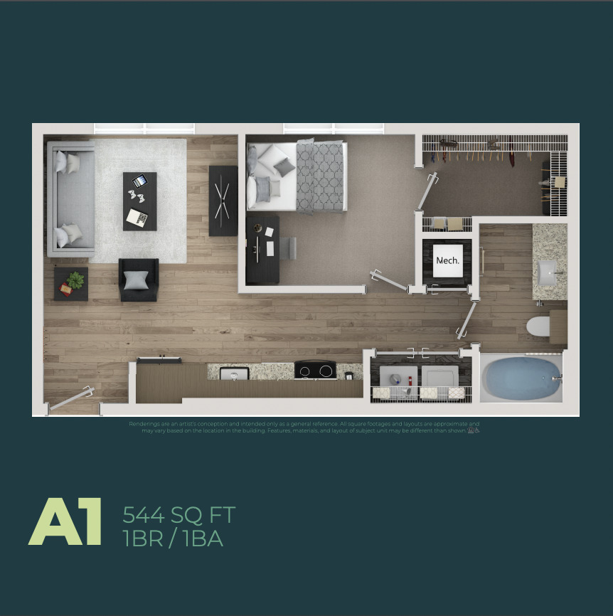 Studio, 1 Bath, 308 sq ftAvailability Details