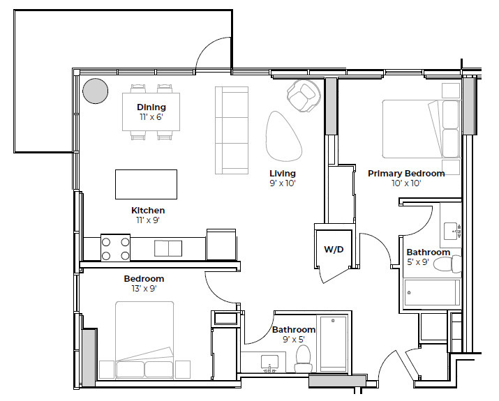 Apartment Model: Two BedroomFrom $1,4202 Bedroom, 2 Bath, 527-529 sq ftAvailable Now![]()