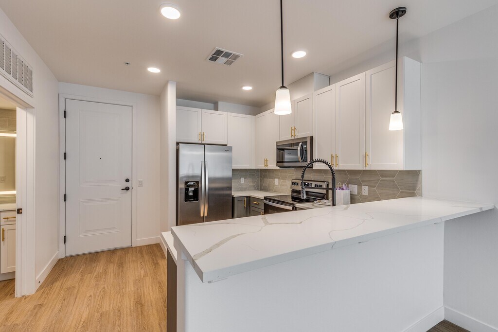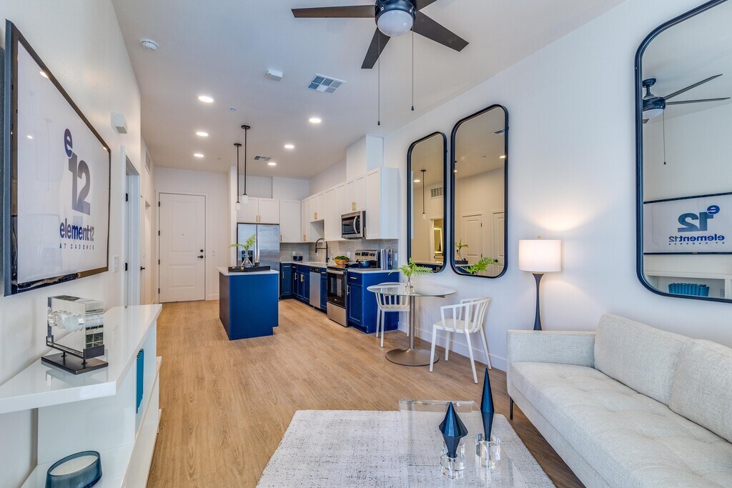 Welcome to Element 12 Apartments, where luxury living meets convenience in the heart of Henderson, Nevada. Our brand-new, upscale community offers 1, 2, and 3-bedroom apartment homes with all the modern amenities you need to live your best life. Our luxury apartments for rent in Henderson, NV are designed to fit your lifestyle, whether you enjoy cooking, entertaining, or just relaxing in your own space. Enjoy Wood-Style Plank Flooring, Stainless Steel Appliances, and Quartz Countertops, all of which make your apartment feel like home. Our resort-style amenities include a 24-hour wellness studio with cardio, a sparkling heated pool with a fire table, cabanas, BBQs, and an outdoor TV. You can also stay fit by playing pickleball or using our yoga studio with spin bikes, and on-demand fitness classes. Personalized smart access entry systems along with being a gated community provides convenience for residents and guests.