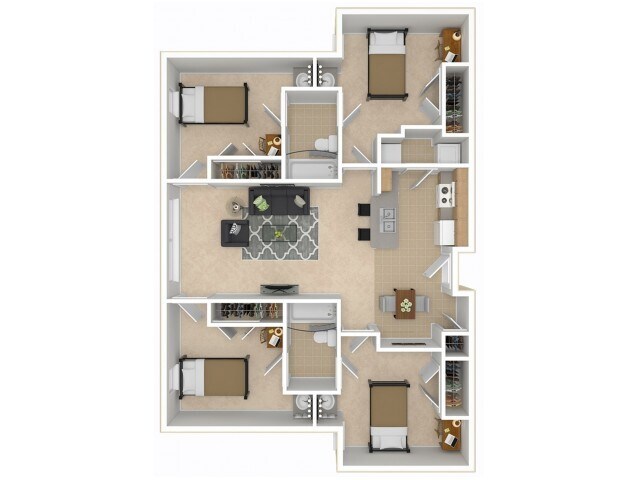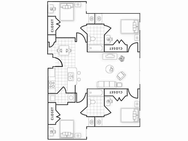 2 Bed, 2 Bath - Floorplan 5 4 Bedrooms