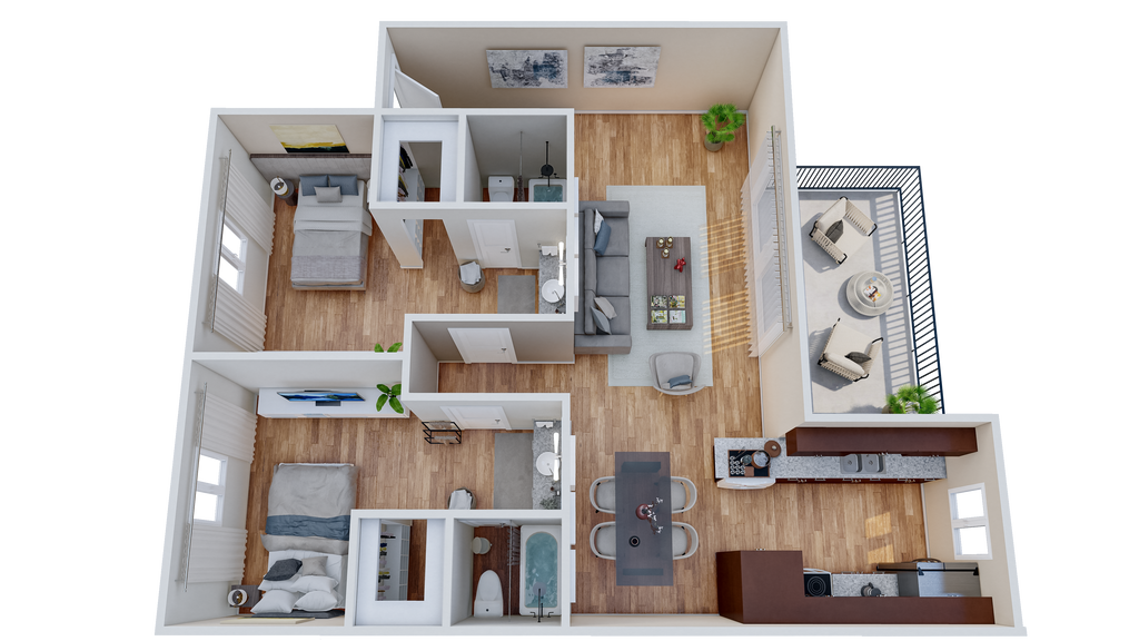 2 Beds, 2 Baths, 960 sq ftModel Gallery