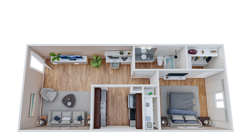 1 Bed, 1 Bath, 542 sq ftModel Gallery