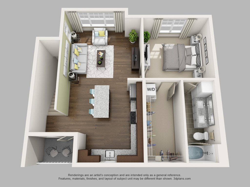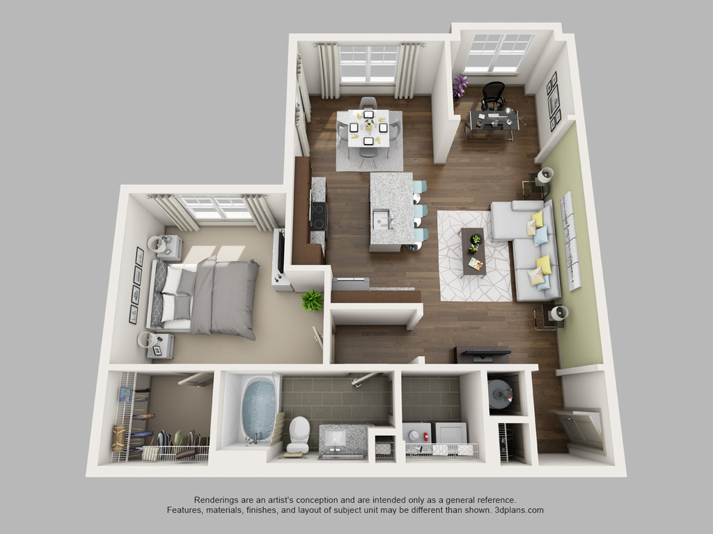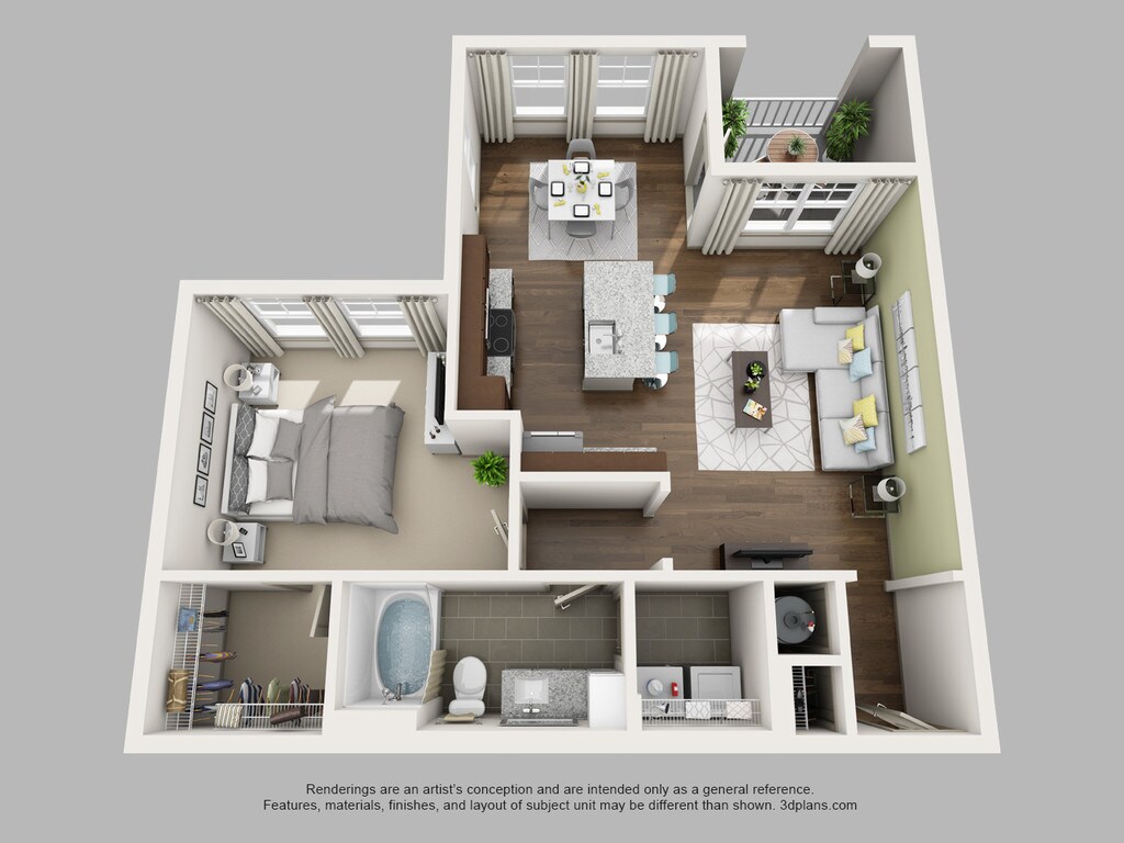 Apartment Model: A1From $1,4901 Bedroom, 1 Bath, 750 sq ftAvailable NowFloor plans are artist's rendering. All dimensions are approximate. Actual product and specifications may vary in dimension or detail. Not all features are available in every rental home. Prices and availability are subject to change. Base rent is based on monthly frequency. Additional fees may apply, such as but not limited to package delivery, trash, water, amenities, etc. Deposits vary. Please see a representative for details.