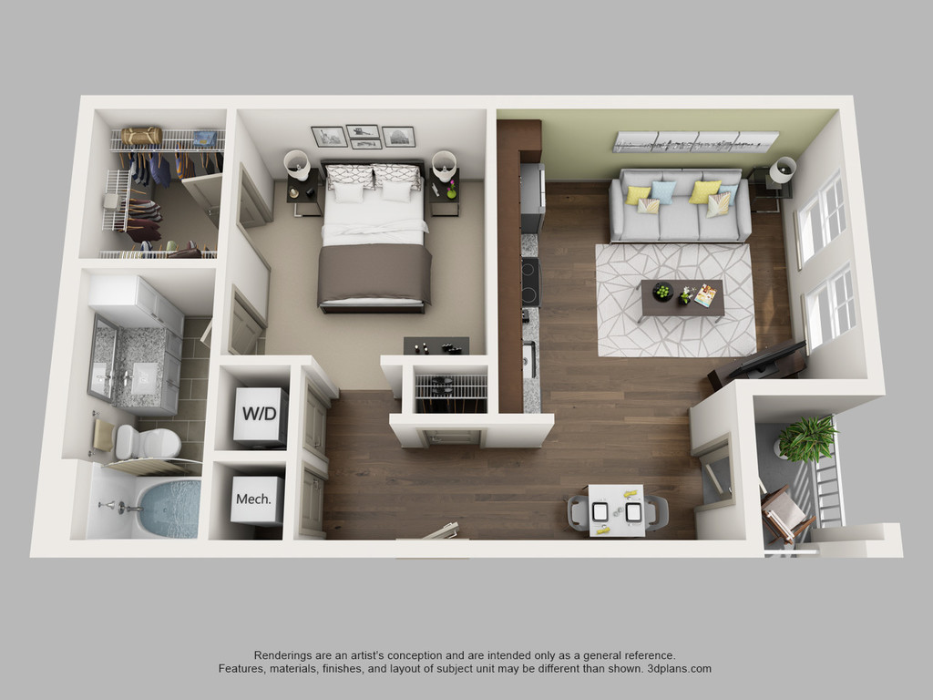 Studio, 1 Bath, 594-610 sq ftAvailable NowModel Gallery
