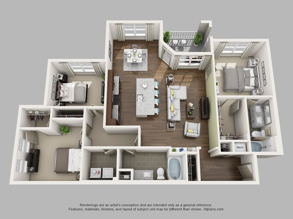 - Expansive Studio, 1, 2 and 3 bedroom floor plans
