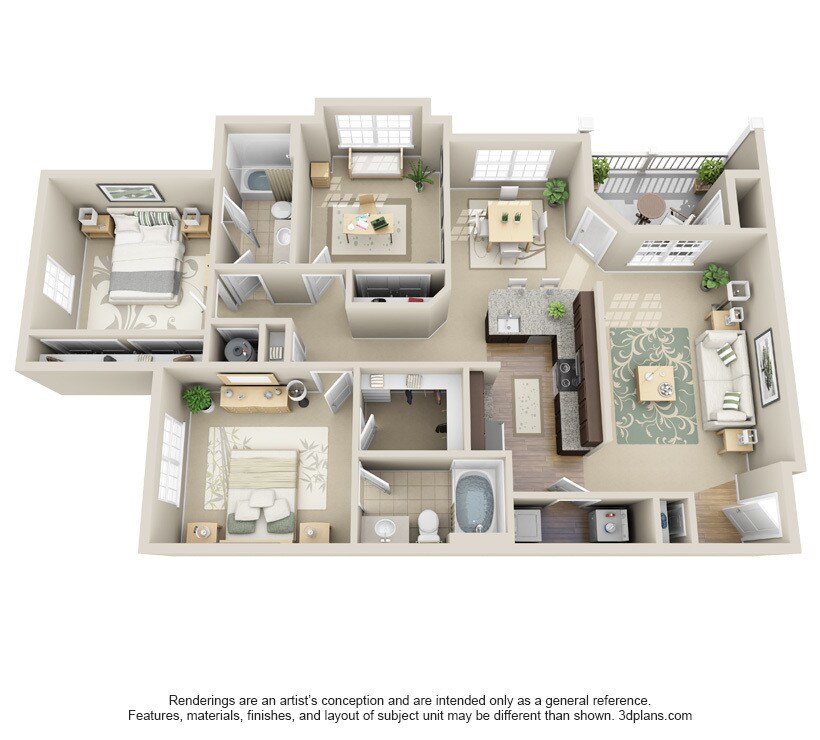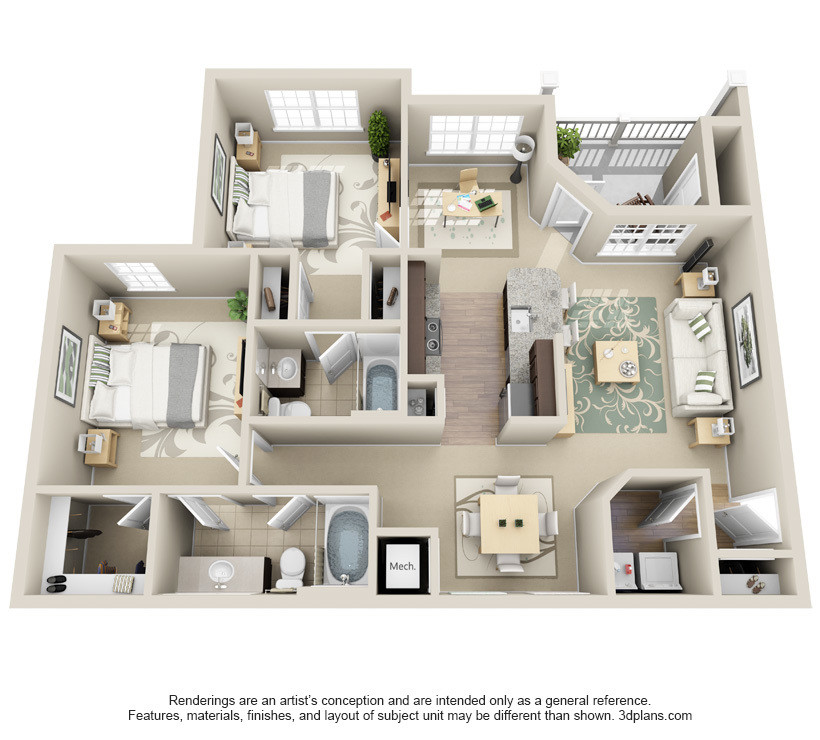 - Spacious One, Two and Three Bedroom Floor Plans