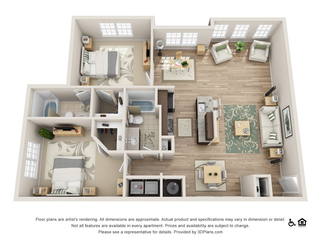 Apartment Model: B2 Edisto$1,6902 Bedroom, 2 Bath, 1109 sq ftAvailable NowFloor plans are artist's rendering. All dimensions are approximate. Actual product and specifications may vary in dimension or detail. Not all features are available in every rental home. Prices and availability are subject to change. Base rent is based on monthly frequency. Additional fees may apply, such as but not limited to package delivery, trash, water, amenities, etc. Deposits vary. Please see a representative for details.