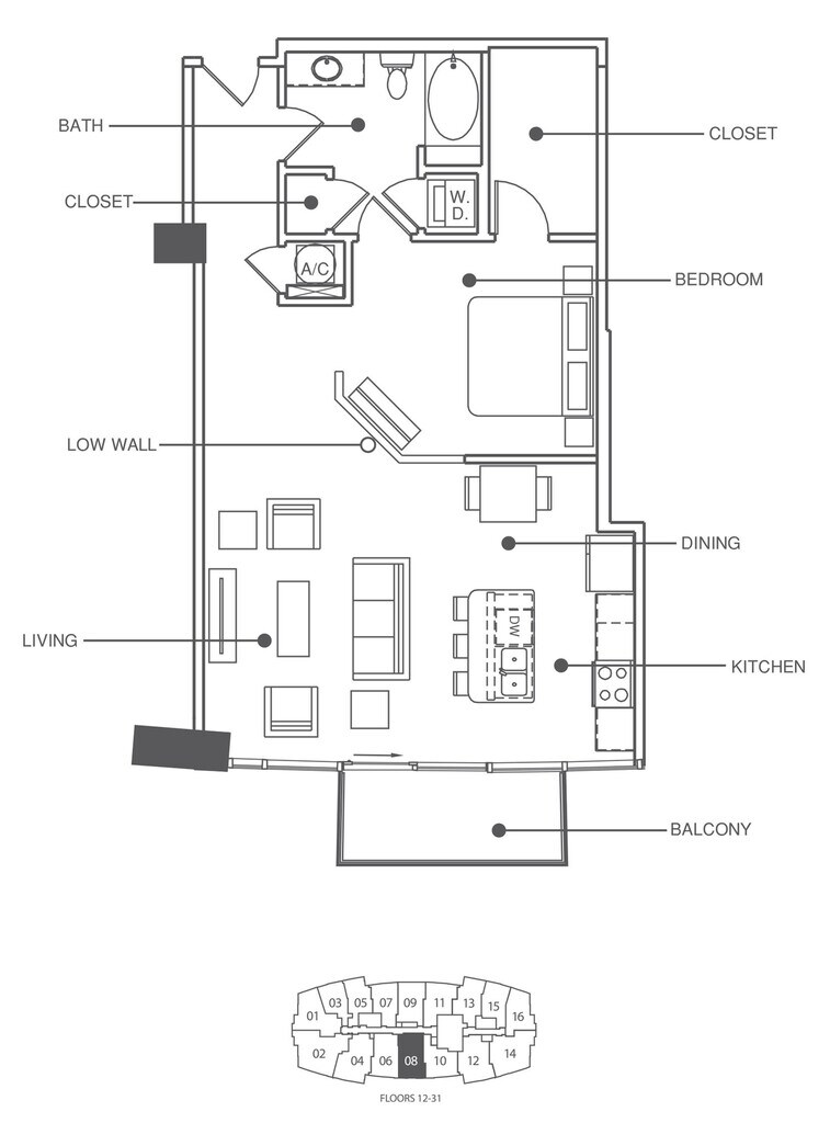 Apartment Model: Residence 15 - ClassicFrom $2,0051 Bedroom, 1 Bath, 722 sq ftAvailable Now![]()