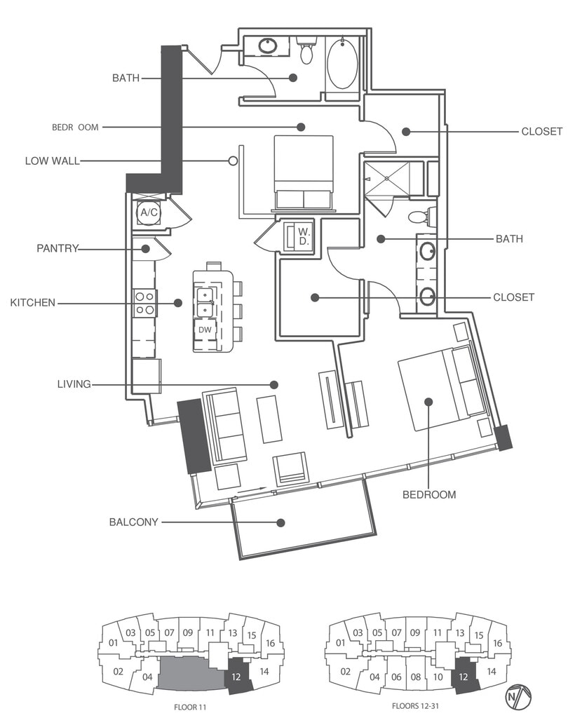 Apartment Model: Residence 15 - ClassicFrom $2,1251 Bedroom, 1 Bath, 722 sq ftAvailable Now![]()