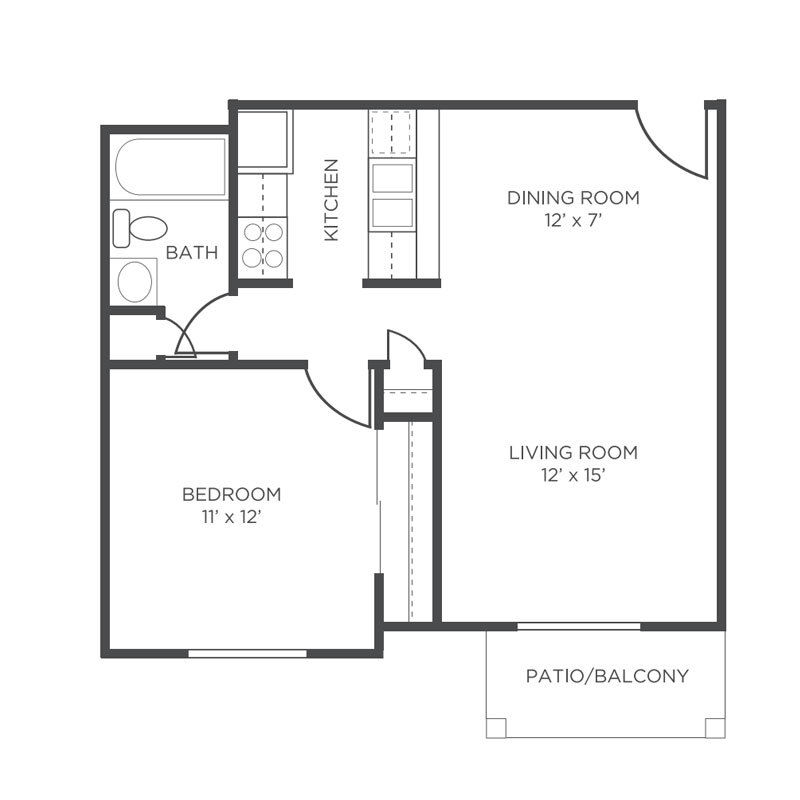 Apartment Model: A1pFrom $9401 Bedroom, 1 Bath, 560 sq ftAvailable NowFloorplansPhotos![]()