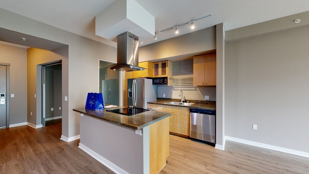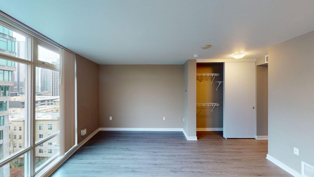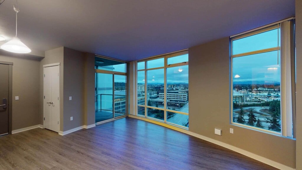 Elements Apartments boasts spacious studio, one-bedroom, and two-bedroom apartments for rent in Bellevue, WA. Perfectly located in downtown Bellevue, Elements Apartments is across the street from Overlake Hospital and provides convenient access to I-405 as well as being a short walk to the upscale shopping at Bellevue Square and only minutes from downtown Seattle and Mercer Island. Residents at Elements Apartments enjoy a fully-equipped fitness center, theater room, and fine art by Dale Chihuly. Your Elements Apartment boasts brand new appliances, flooring, and boasts spectacular views of downtown Bellevue with views of downtown Seattle and Mt. Rainier available in select apartments. Whether it is the convenience of shopping at your front door, on-site concierge service at the touch of a button, or a relaxing morning on the sundeck taking in the skyline and surrounding mountains, come home to Elements Apartments.