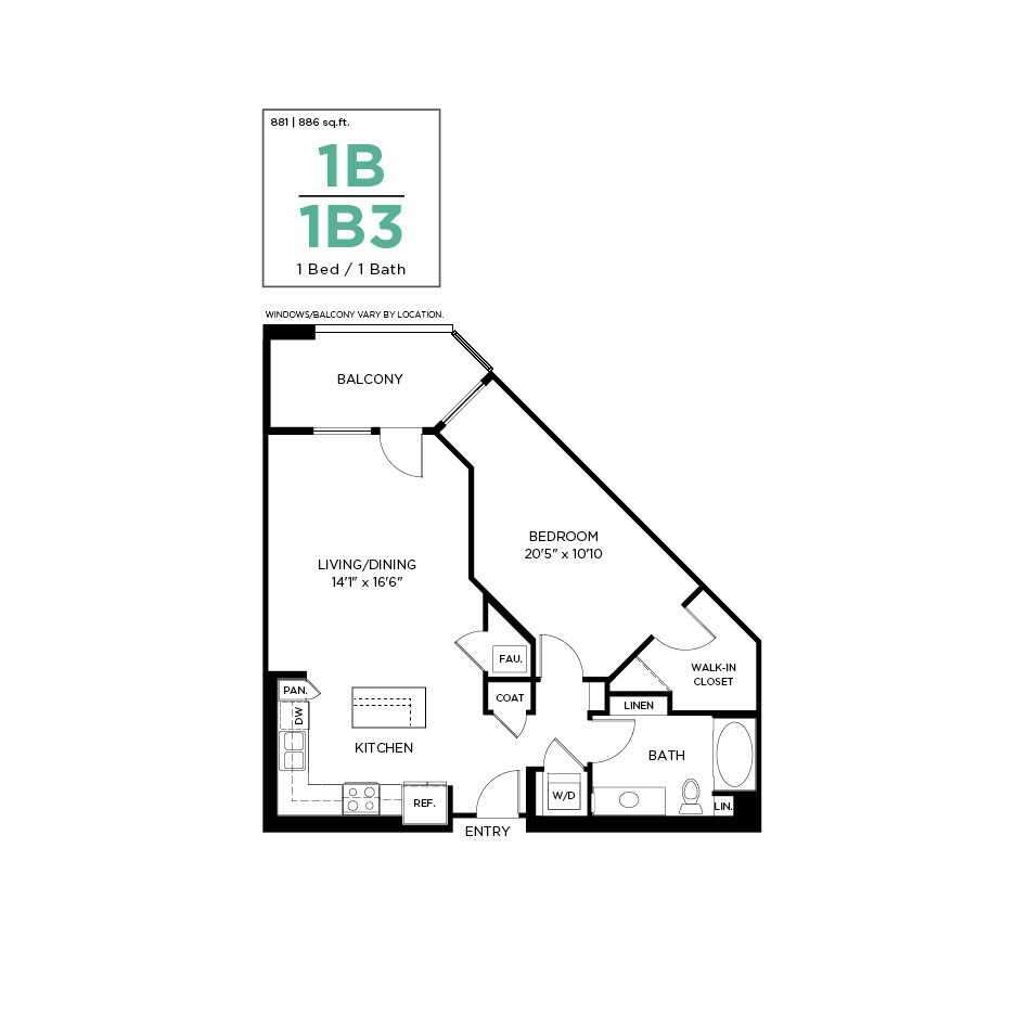 Apartment Model: Elements_Metal-1F Alt$3,5741 Bedroom, 1 Bath, 1005 sq ftAvailable December 1, 2025![]()