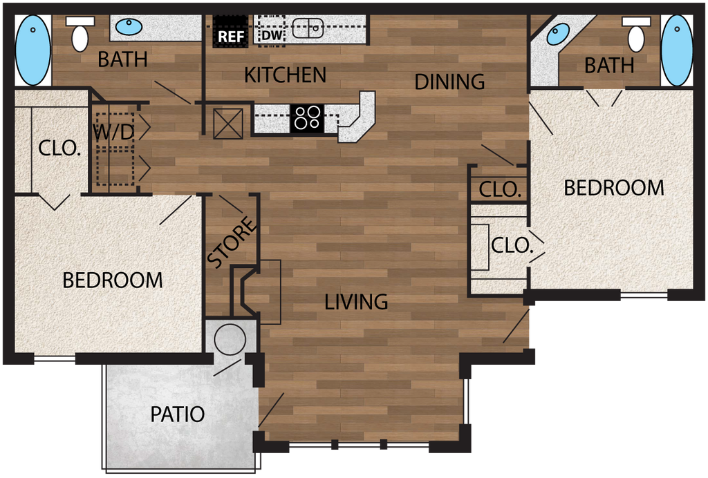 1 Bed, 1 Bath, 843 sq ftAvailable NowModel Gallery