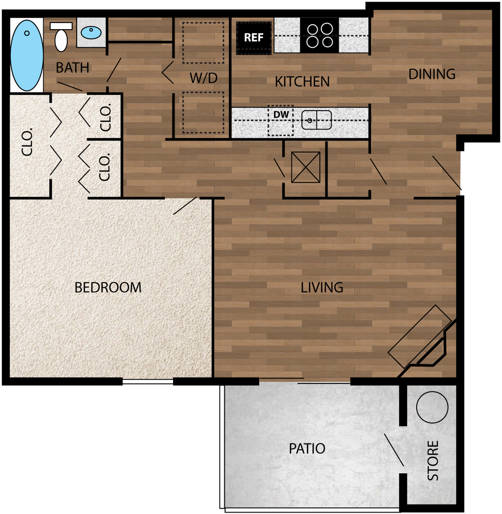 Apartment Model: A1A - RenovatedFrom $8981 Bedroom, 1 Bath, 750 sq ftAvailable November 8, 2025![]()
