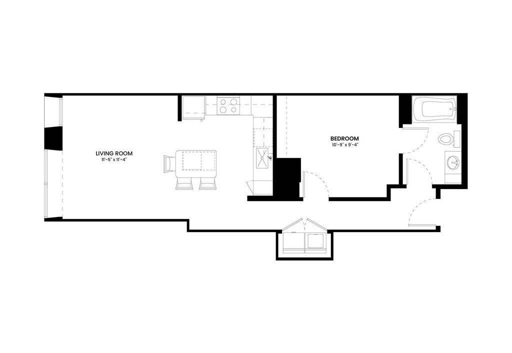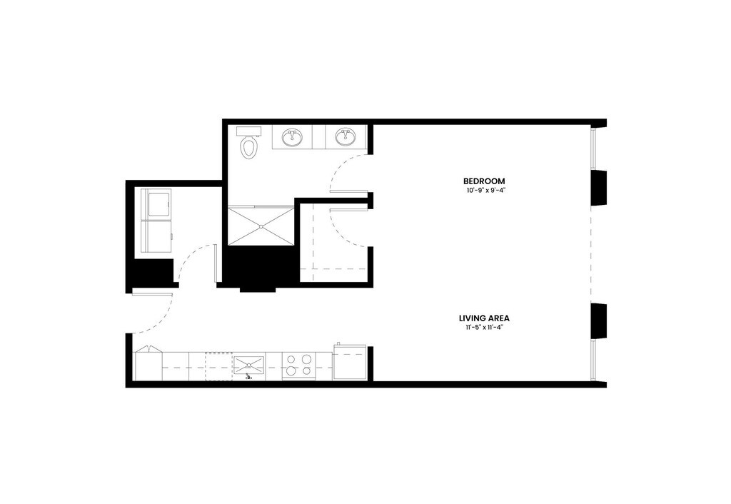 S2 - Floorplan 1 Apartment Unit: 1816Apartment Model: S2$1,950Studio, 1 Bath, 646 sq ftAvailable NowFloorplan S1