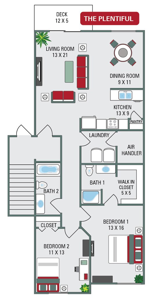 Apartment Model: The PlentifulFrom $1,5252 Bedroom, 2 Bath, 1162-1177 sq ftAvailable Now![]()