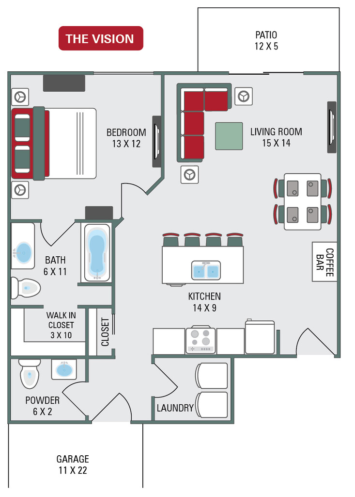 Apartment Model: The VisionFrom $1,3601 Bedroom, 1.5 Bath, 800 sq ftAvailable Now![]()