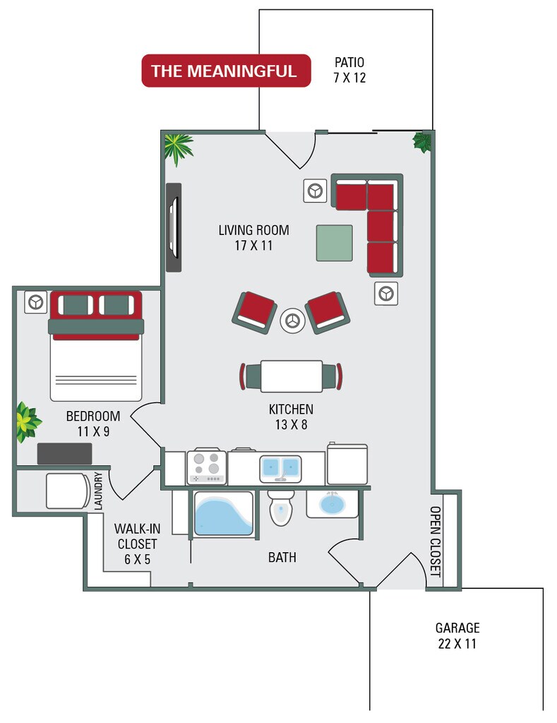 Apartment Model: The MeaningfulFrom $1,2251 Bedroom, 1 Bath, 700 sq ftUnavailable![]()