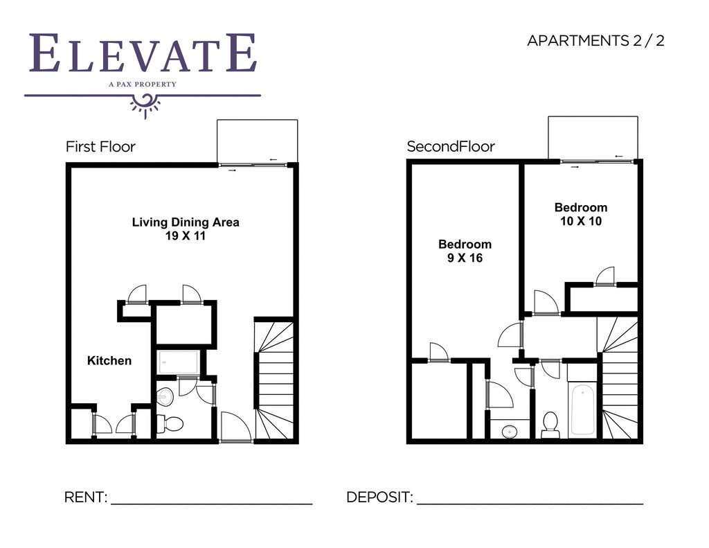2bd/2bth flat - Floorplan 3 2bd/2bth Townhouse