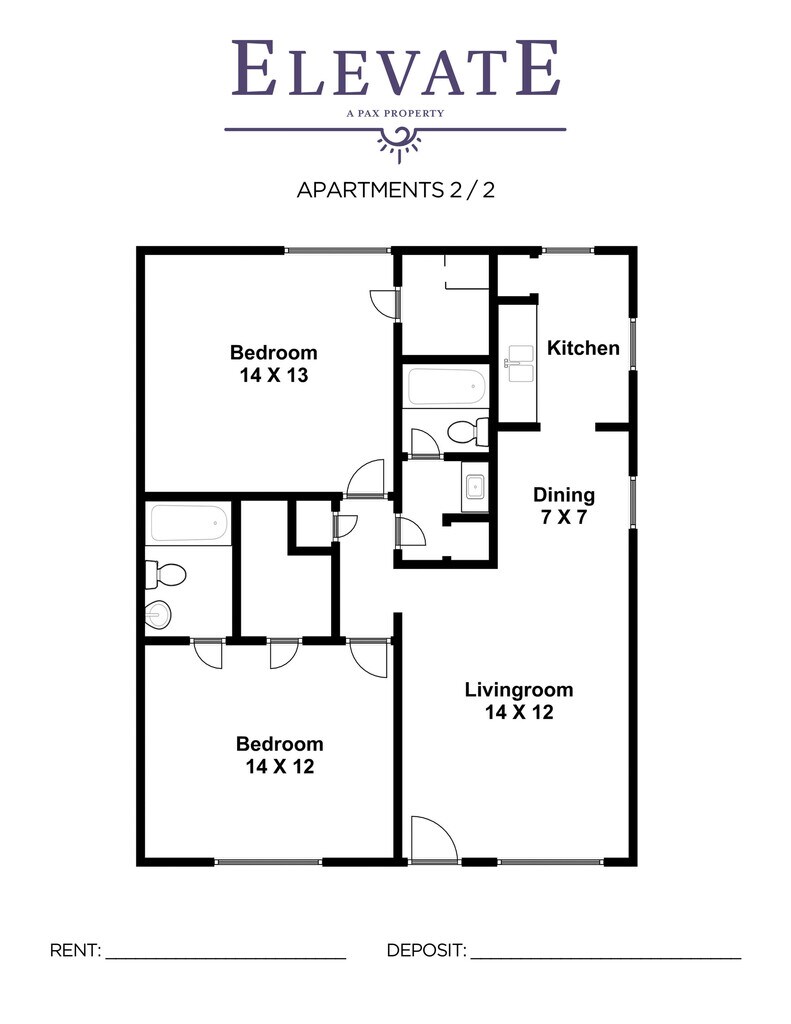 Exec. 1Bd - Floorplan 2 2 Bedrooms