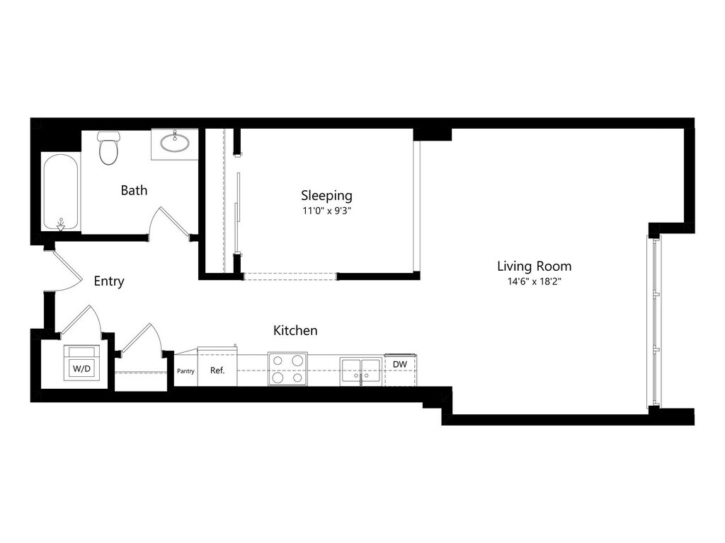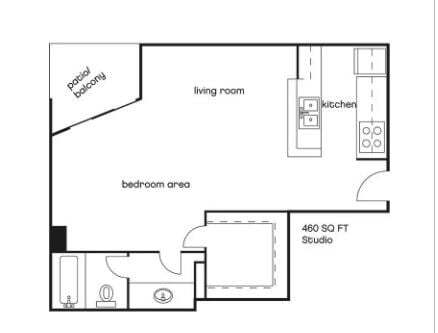 Apartment Model: JR1RCall For RatesStudio, 1 Bath, 454 sq ftUnavailableFloor plans are artist's rendering. All dimensions are approximate. Actual product and specifications may vary in dimension or detail. Not all features are available in every rental home. Prices and availability are subject to change. Base rent is based on monthly frequency. Additional fees may apply, such as but not limited to package delivery, trash, water, amenities, etc. Deposits vary. Please see a representative for details.