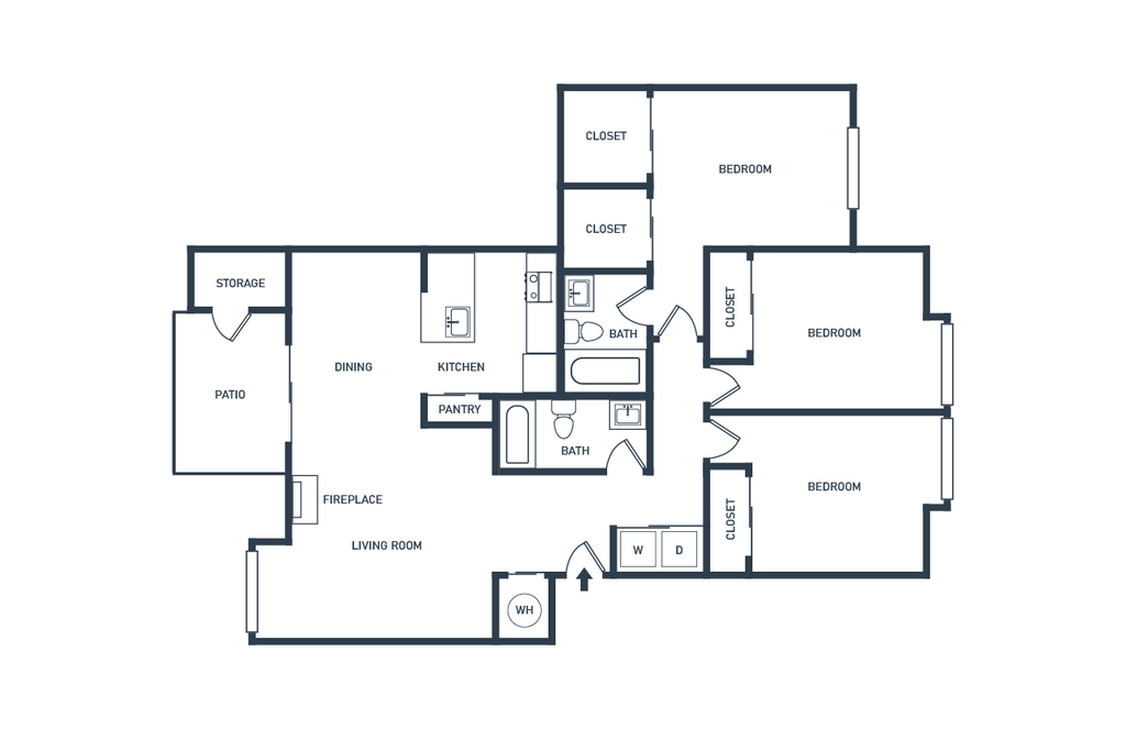 Apartment Model: 3 Bed 2 Bath B3 Bedroom, 2 Bath, 1180 sq ftAvailable December 8, 2025FloorplansPhotos![]()