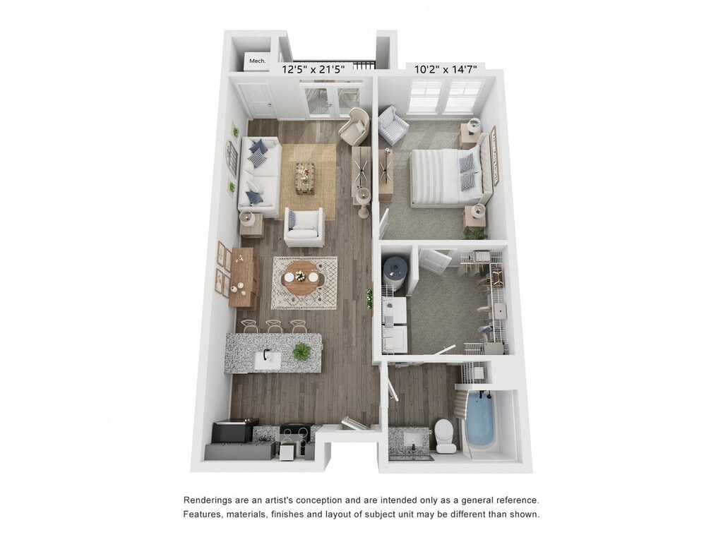 1 Bed, 1 Bath, 812 sq ftModel Gallery