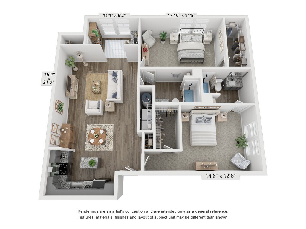 1 Bed, 1 Bath, 804 sq ftModel Gallery