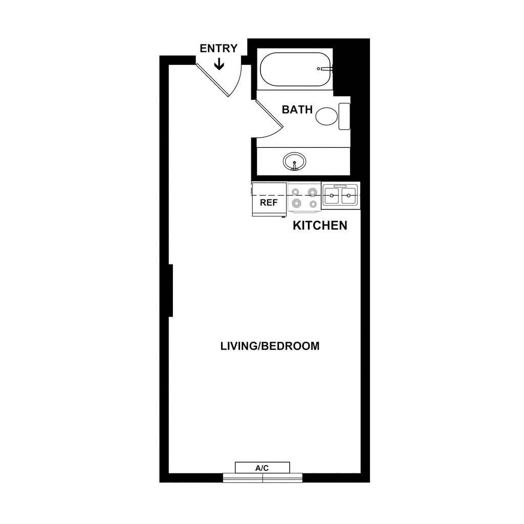 Studio, 1 Bath, 325 sq ftAvailable NowModel Gallery