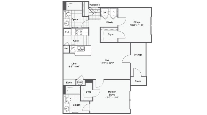 2 Beds, 2 Baths, 933 sq ftAvailable NowModel Gallery