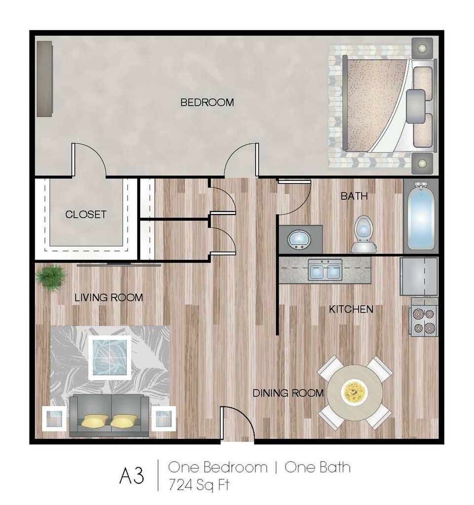 Apartment Model: A3$1,0251 Bedroom, 1 Bath, 724 sq ftUnavailable![]()