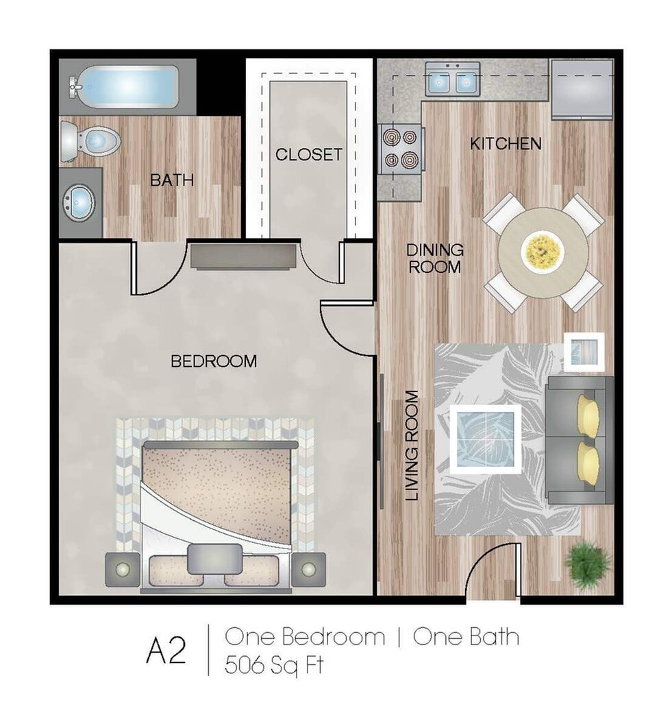 Apartment Model: A2From $8501 Bedroom, 1 Bath, 506 sq ftAvailable Now![]()