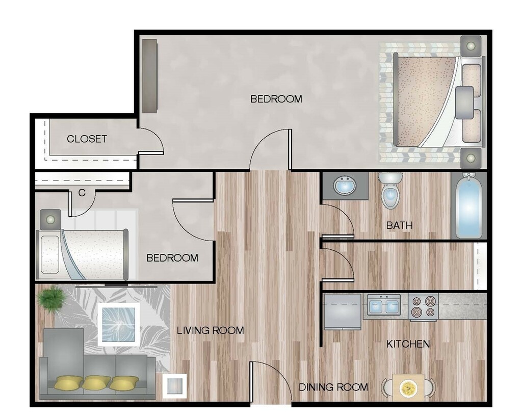 2 Beds, 1 Bath, 883 sq ftAvailable NowModel Gallery