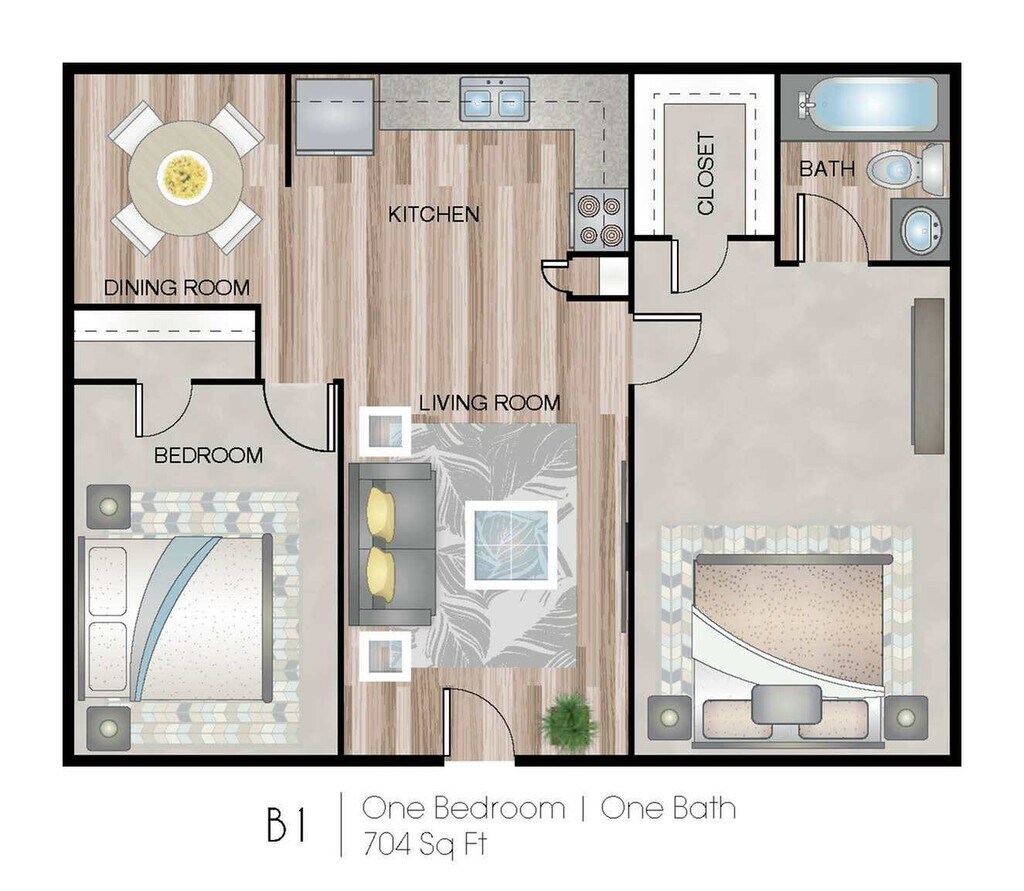 Apartment Model: B1$1,0502 Bedroom, 1 Bath, 704 sq ftUnavailable![]()