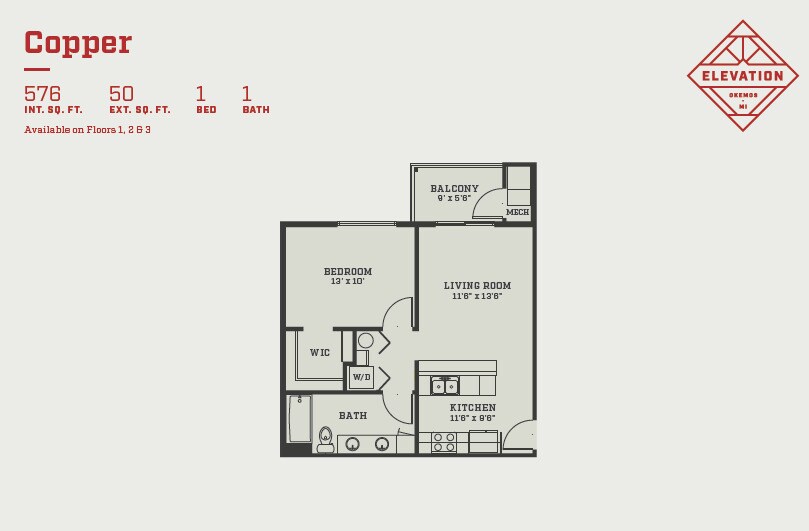 Apartment Model: Copper$1,5941 Bedroom, 1 Bath, 646 sq ftAvailable Now![]()