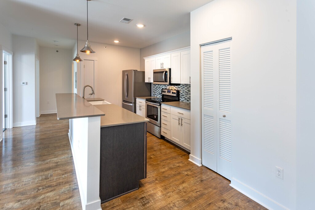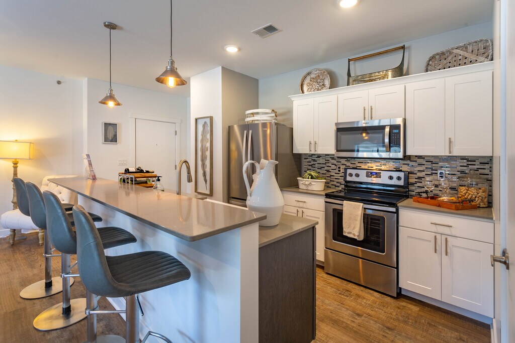 The residences at Elevations bring together the conveniences of Smart Home Technology with a sophisticated modern industrial aesthetic. The gourmet kitchens feature craftsman-style cabinetry and pendant lighting, paired with high-end finishes and stainless steel appliances. An open layout creates the perfect atmosphere to entertain guests or curl up with a book. With residences ranging in size from studios to generous three-bedroom layouts, Elevation offers the perfect space for every lifestyle.