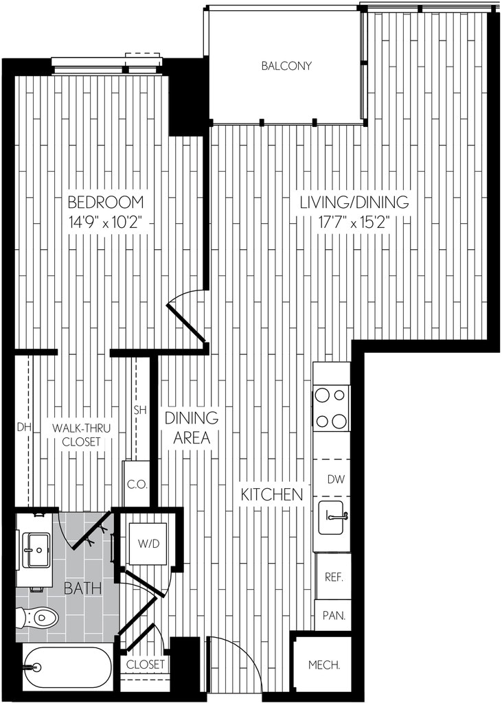 1 Bed, 1 Bath, 668 sq ftAvailable NowModel Gallery