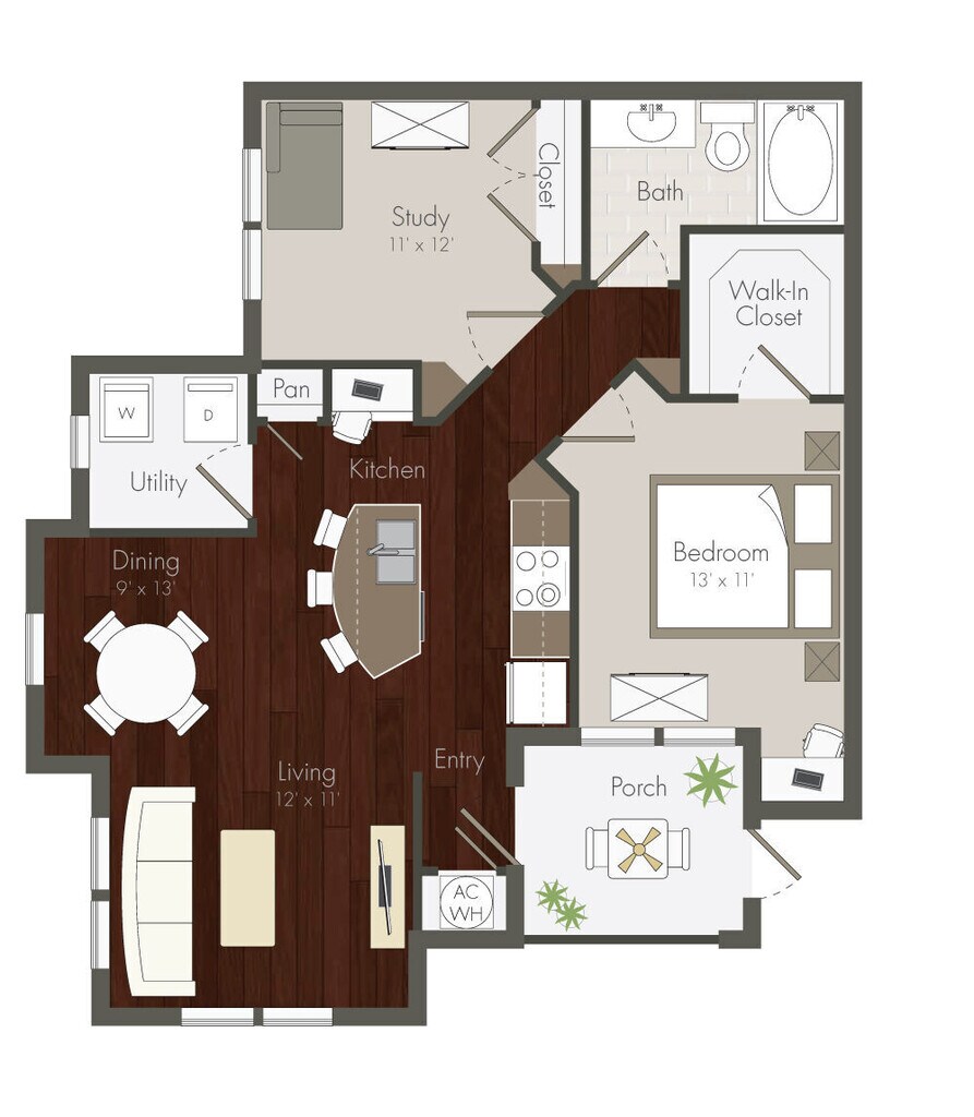 1 Bed, 1 Bath, 864 sq ftTotal Monthly PriceAvailable NowModel Gallery