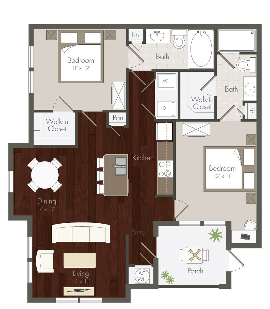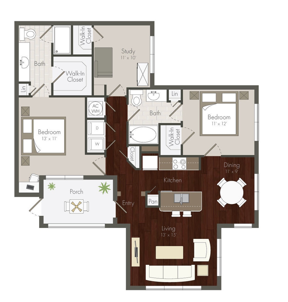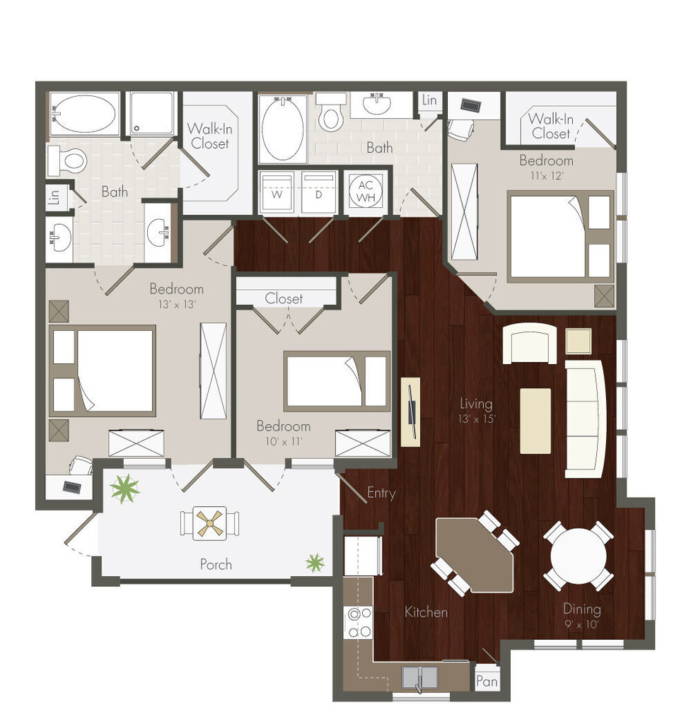 Apartment Model: A3 - 1x1From $1,3341 Bedroom, 1 Bath, 864 sq ftAvailable NowFloorplansPhotos![]()