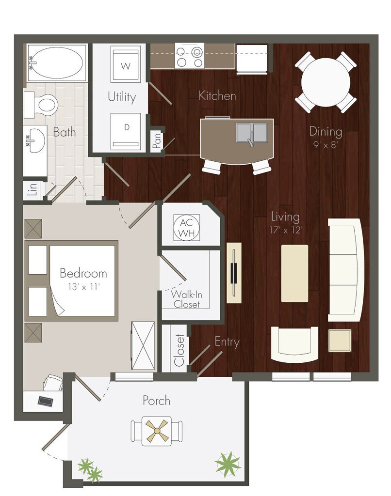 Apartment Model: A1 - 1x1From $1,1291 Bedroom, 1 Bath, 673 sq ftAvailable NowFloor plans are artist's rendering. All dimensions are approximate. Actual product and specifications may vary in dimension or detail. Not all features are available in every rental home. Please see a representative for details.