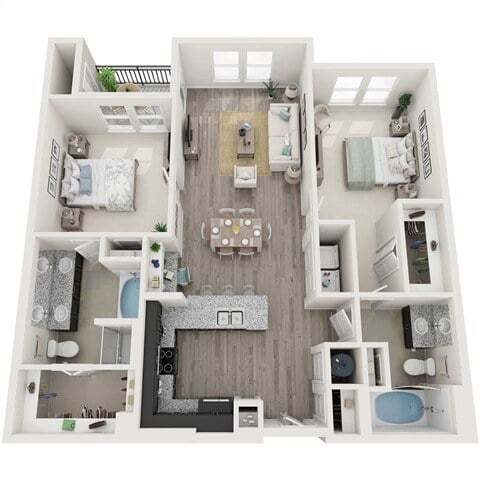 1 Bed, 1 Bath, 887 sq ftAvailable NowLargest 1 BedroomThis is the largest 1 Bedroom at this PropertyModel Gallery