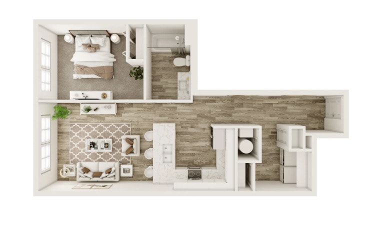 1 Bed, 1 Bath - 637 - Floorplan 1 1 Bedr, 1 Bath - 770