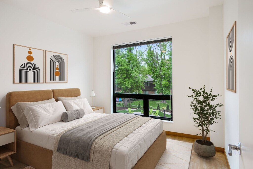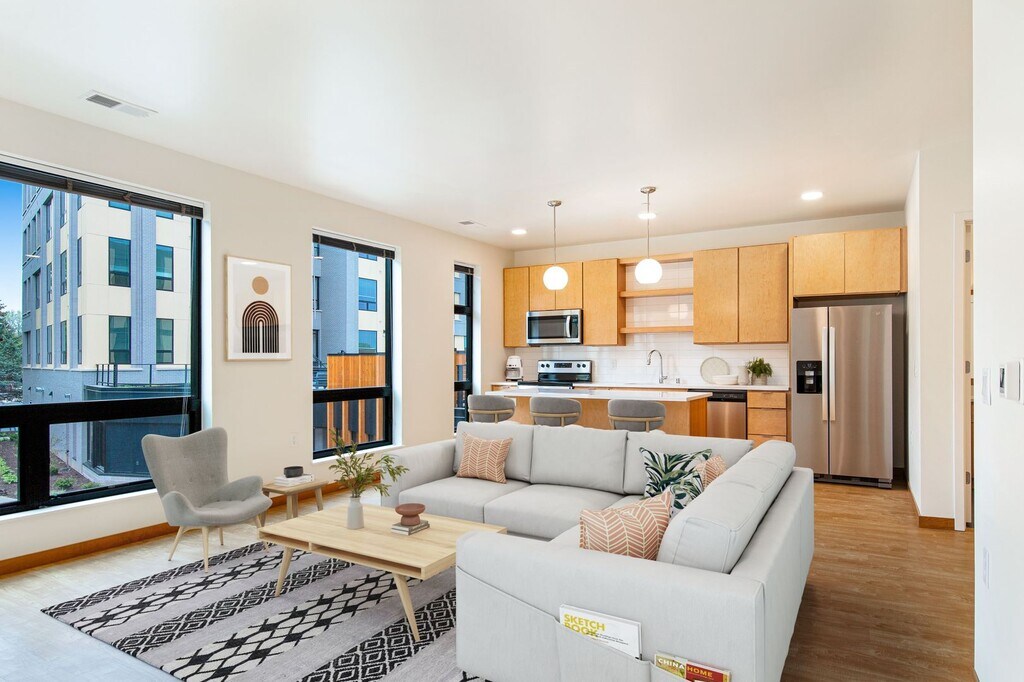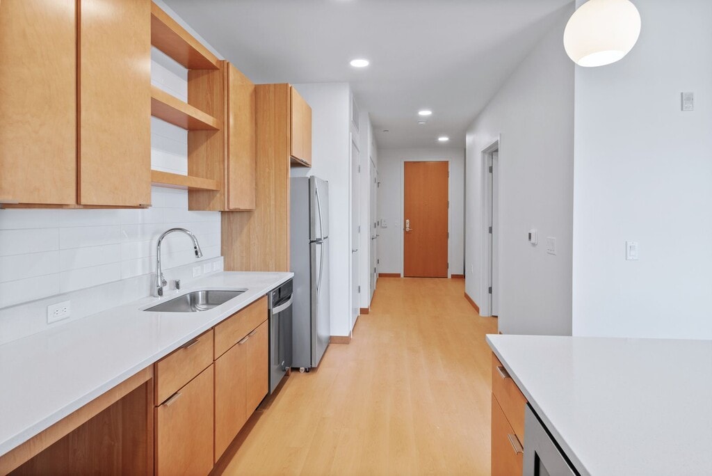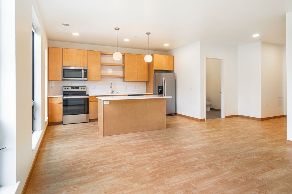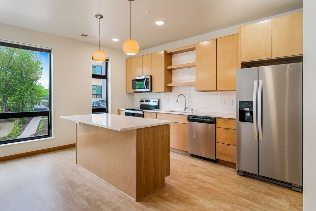 1 Bedroom Income Restricted - 80% Level Moderate-income and student status restrictions apply. Maximum income is determined by household size and is based on gross annual (pre-tax) income. 1 Person - less than $72,720 2 People - less than $83,120 Unit cannot be entirely occupied by full time students. Some exemptions apply - contact us for details. B - D Floor Plan - Southeast Facing Apartment Features Include - In-Unit Washer and Dryer - Kitchen Island - Oversized Windows - Solid Surface Countertops - Stainless Steel Appliances - Subway Tile Backsplashes - Tub/Shower Combo - Vinyl Plank & Tile Flooring - Walk-In Closet - Window Coverings Tenant Liability Insurance Required. (Minimum coverage of 100K) (Pricing, inclusions and eligibility subject to change)