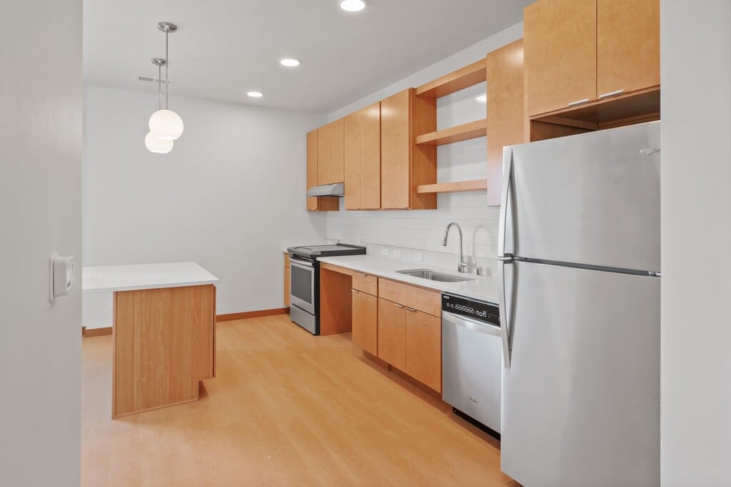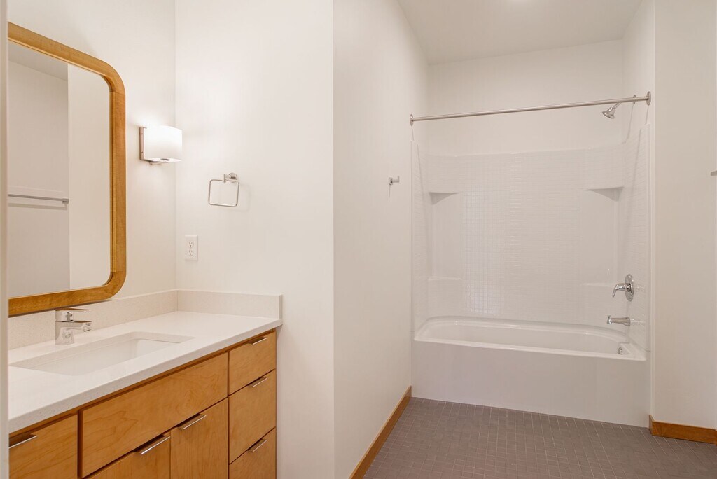 1 Bedroom Income Restricted - 80% Level Moderate-income and student status restrictions apply. Maximum income is determined by household size and is based on gross annual (pre-tax) income. 1 Person - less than $72,720 2 People - less than $83,120 Unit cannot be entirely occupied by full time students. Some exemptions apply - contact us for details. A - V Floor Plan - Southewst Facing - Corner Unit Apartment Features Include - Built-In Desk - In-Unit Washer and Dryer - Kitchen Island - Oversized Windows - Solid Surface Countertops - Stainless Steel Appliances - Subway Tile Backsplashes - Tub/Shower Combo - Vinyl Plank & Tile Flooring - Window Coverings Tenant Liability Insurance Required. (Minimum coverage of 100K) (Pricing, inclusions and eligibility subject to change)