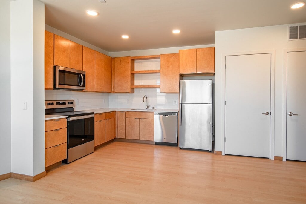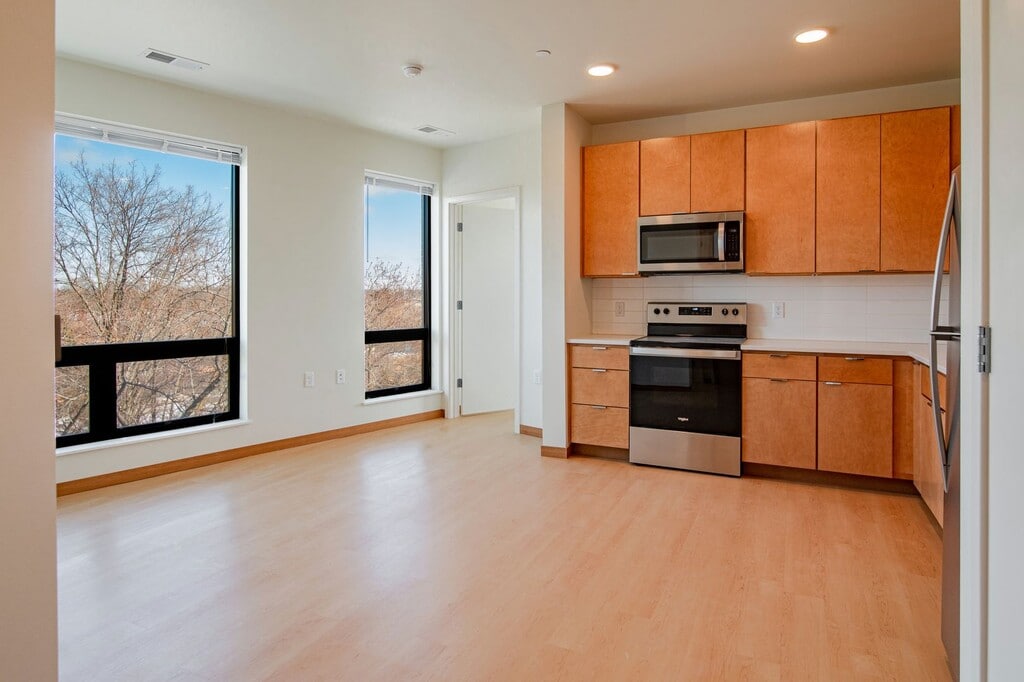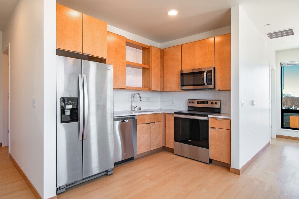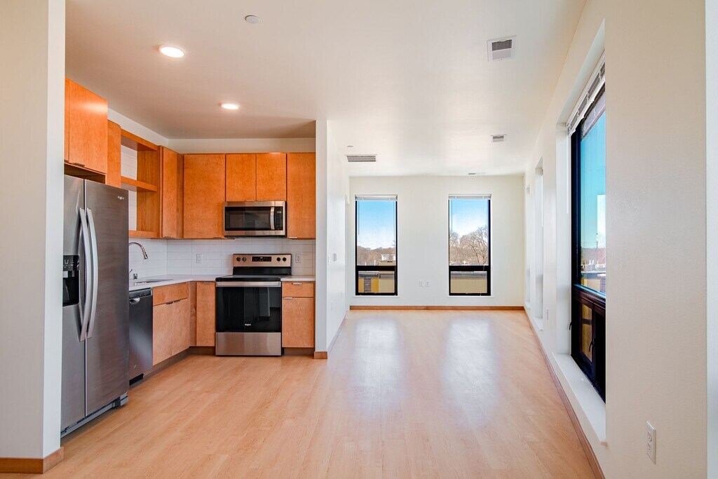 1 Bedroom Income Restricted - 80% Level Moderate-income and student status restrictions apply. Maximum income is determined by household size and is based on gross annual (pre-tax) income. 1 Person - less than $72,720 2 People - less than $83,120 Unit cannot be entirely occupied by full time students. Some exemptions apply - contact us for details. B - H Floor Plan - Northeast Facing - Corner Unit Apartment Features Include - In-Unit Washer and Dryer - Oversized Windows - Solid Surface Countertops - Stainless Steel Appliances - Stall Shower - Subway Tile Backsplashes - Vinyl Plank & Tile Flooring - Window Coverings Tenant Liability Insurance Required. (Minimum coverage of 100K) (Pricing, inclusions and eligibility subject to change)